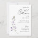 Celebra una ducha especial de novia con esta bella y elegante invitación que incluye delicadas flores de color morado. El diseño minimalista incluye fuentes de guiones refinadas y un diseño limpio, perfecto para crear una impresión atemporal y sofisticada. Personalizar el texto con los detalles de su evento. Ideal para la primavera y los temas románticos.