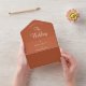 Todo en una sola invitación a la boda. Color: naranja quemado. Boho, otoño, capricho, etc tema boda.