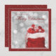 Tarjeta de Navidad elegante y roja que presenta un saco lleno de regalos de Navidad. Personalice fácilmente esta tarjeta de vacaciones moderna en línea.