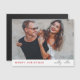 Una elegante tarjeta de felicitación magnética fotográfica de vacaciones con tipografía moderna "Feliz Navidad" en rojo y escritura manuscrita para los nombres de las parejas en un fondo blanco minimalista y simple. La foto, el nombre y el saludo se pueden personalizar fácilmente para un toque personal. Un diseño de navidades sencillo, minimalista y contemporáneo que destaca en esta temporada de vacaciones. La imagen que se muestra es para fines de ilustracion y sólo se sustituye por la suya. La imagen del marcador de posición es de una pareja feliz.
