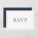 Una elegante y clásica tarjeta de gabinete RSVP de boda azul marino, con caligrafía de guión. Perfecto para la novia moderna que tiene un romance formal. Para eliminar las opciones de comida, hemos creado un video de cómo hacerlo aquí: https://youtu.be/ZGpeldQgxoE Ver colección completa aquí: https://www.zazzle.com/collections/elegant_burgundy_classic_script_wedding-119551906868087326 Contactar con el diseñador para productos coincidentes. Copyright Elegant Invita, todos los derechos reservados.