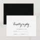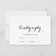 Elegante texto negro de cristal y frente de fondo blanco con delicados puntos metálicos falsos y espalda negra con falsos puntos metálicos tarjeta de respuesta boda.