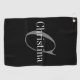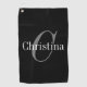 Este respetable y elegante diseño de toallas de golf tiene un nombre editable y una letra inicial. Una toalla de golf como esta puede ser un regalo divertido y personalizado para alguien a quien realmente le gusta el golf. [~Z0000440]