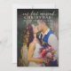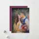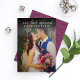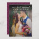 El diseño de la tarjeta de fotografía "Nuestros primeros Navidades casados" para una pareja recién casada incluye una foto retrato del día de la boda con un diseño de texto blanco y elegante que puede ser personalizado. La parte posterior de la tarjeta presenta un color de fondo rojo borgoña/vino con un patrón floral frondoso.