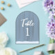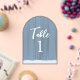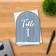 Los elegantes números de la mesa pintada azul pizarra son perfectos para celebrar bodas elegantes.