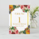 Esta es una tarjeta de número de mesa de boda dorada floral elegante y chic.