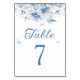 Elegante Número de Mesa de Boda Polvoriento Azul