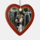 Un romántico adorno navideño con tu propia foto (boda) enmarcada por una frontera dorada y borgoña. Hermoso para recién casados, solo parejas comprometidas o para celebrar un aniversario.