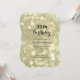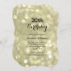 Una elegante invitación de cumpleaños mostrada en un marco de luces doradas.