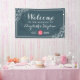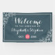 Pancarta de Boda de guion manuscrita con flor botánica azul vintage y elegante. Un diseño perfecto para tu gran día. Todos los estilos de texto, colores, tamaños se pueden modificar para adaptarlos a sus necesidades.