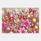Añada un toque de elegancia y alegría a sus regalos de vacaciones con este papel envuelto de Navidades vibrantes. Con una deliciosa mezcla de poinsettias rosas, adornos dorados, bastones de caramelo y arcos brillantes, este diseño irradia alegría y brillo. Perfecto para hacer que sus regalos destaquen bajo el árbol.