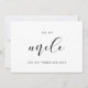 Una tarjeta de regalo simple y minimalista para escribir un mensaje personal y sincero para tu tío en tu día de boda. Personalizable completo con tus colores favoritos (texto y fondo). Puede agregar un mensaje en la parte posterior o dejarlo en blanco si prefiere escribir a mano más tarde.