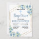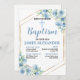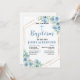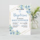 Elegantes invitaciones religiosas cristianas de bautismo floral azul pastel.