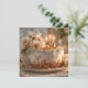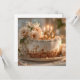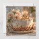 Esta hermosa y elegante imagen cuenta con un pastel blanco de festividad esmerilada sobre un plato dorado, adornado con un gran y delicado ramo de flores blancas y color melocotón. La tarta es un elemento central para una celebración de un hito, con una torta dorada "50" y tres velas encendidas. El entorno es cálido y acogedor, con una luz suave y natural y una suave dispersión de migajas, creando un ambiente íntimo y alegre. Esta imagen es perfecta para quien quiera transmitir un sentido de lujo, elegancia y una ocasión especial y memorable.