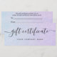 Estos magníficos certificados de regalo presentan un interior pastel sencillo pero elegante, con tonos azules y rosas en imitación purpurina, y una moderna caligrafía a la moda. Un aspecto joven y moderno que es perfecto para todo aquel que trabaje con belleza, como el propietario de un spa o salón, los técnicos de uñas, los artistas del maquillaje, los creadores de contenidos y más.