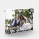 Hermoso bloque de fotos personalizado con elegante marco de copo de nieve. Personalice el producto con su foto de boda favorita.