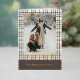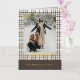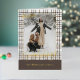 Esta tarjeta de felicitación navideña se destaca por su diseño elegante y único. Cuenta con un saludo atemporal de "Felices Fiestas" impreso en auténtico papel de oro, personalizable según tus preferencias, sobre un diseño de cuadros en colores neutros y naturales de la tierra. La parte frontal ofrece espacio para el nombre de tu familia, una foto y un saludo estacional personalizado, mientras que el interior es perfecto para agregar un mensaje estacional personalizado o un poema. Es una forma elegante de enviar tus deseos navideños.