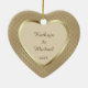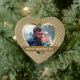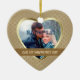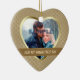 Este elegante ornamento presenta su fotografía especial dentro de un brillante marco dorado en forma de corazón contra un fondo de patrón oro de bonito. Tu texto es de oro claro en un banner de oro antiguo oscuro enmarcado en oro fino. La parte posterior del ornamento tiene un campo en forma de corazón con más campos de texto para su personalizar. ¡Un hermoso recuerdo para ese importante Primer El día de San Valentín juntos!