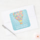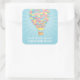 Indique su mensaje de agradecimiento en los favores de la ducha de bebé con este pegatina decorativo! El diseño incluye un globo de aire caliente en tonos pastel y coloridos, de la combinación de colores arcoiris. Salto de sol en segundo plano. Personaliza tu mensaje de agradecimiento.