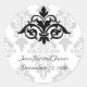 pegatina de boda de damasco de bonito. Un damasco blanco y gris invade el fondo, mientras que un diseño negro cuelga de la parte superior para un poco de jazz. Puede personalizar su nombre, fecha de boda o cualquier otra información que desee incluir en este documento.