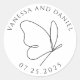 ¡Sellada con besos de mariposa! Personalizar a este pegatina boda con sus nombres y fecha de evento. Como parte de la colección Mariposa de desplazamiento, estos pegatinas se pueden usar como sellos para sobres para sus invitaciones, tarjetas de agradecimiento y más.