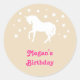 Este elegante pegatina es ideal para una fiesta de cumpleaños de unicornio con un toque elegante. Presenta la silueta de un unicornio con estrellas y puntos alrededor. Utilícelo para favores de fiesta, decoraciones o para sellar sobres.