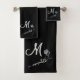 NOTA: Hay dos versiones de este juego de toallas dependiendo de cómo se doblen las toallas para mostrar el monograma. Esta es una hermosa y elegante toalla negra con un Monograma único personalizado multicolor / inicial y con tu nombre — y — el purpurinoso de vidrio del rosa plateado. Creará un ambiente suave y acogedor y lo suficientemente amable como para poder hacer una variedad de efectos de coordinación. ¡Creará una bonita decoración en el cuarto de baño! Cualquier pregunta de diseño o asistencia, sólo tiene que enviar un chat o correo electrónico a charmdesignstudio@rcn.com y nos encantará asistirle.