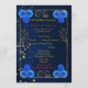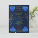 Agregue elegancia a su ceremonia con este hermoso programa de boda floral azul que presenta un lujoso borde dorado. Diseñado con delicadas flores de acuarela azul marino y un marco dorado sofisticado, esta plantilla de programa complementa perfectamente los temas de boda azules y dorados.