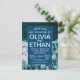 Esta moderna invitación azul marino es perfecta para una fiesta de compromiso de crucero o playa, boda tras fiesta, retiro, graduación o cualquier evento feliz. El diseño es sencillo y cuenta con un hermoso paisaje marino, olas de mar, animales marinos y arrecifes coloridos.