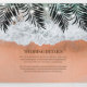Todo en un destino de la playa, invitación a las bodas triples con fondo de playa tropical de verano, con hojas de palmera y luces de cuerda. Usted puede añadir una foto personalizada de usted y su pareja, los detalles del boda como información de alojamiento y presentación de solicitudes, la invitación, y una postal rsvp para que sus invitados corten y envíen de vuelta.