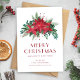 Elegante y personalizada tarjeta de ferry navideña de Poinsettia floral roja.