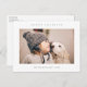 Envíe saludos de vacaciones con amor y un toque de diseño, fresco y moderno. Esta plantilla de postales de vacaciones de fotos personalizado es una opción que se puede personalizar y puede editar fácilmente varios elementos de diseño para adaptarse a su estilo, también! En la parte delantera de la foto incluimos un mensaje FELIZ FESTIVO encima de la foto y el espacio para tu nombre y el año siguiente. Puede cambiar la redacción, el color, el tipo de letra o el tamaño del texto de cualquiera de los dos lados. Puede cambiar 'FELIZ FESTIVIDAD' a 'FELIZ NAVIDAD' u otro saludo que se ajuste a su estilo, o puede cambiar el color del texto 'FELIZ FESTIVIDAD' u otro texto, por ejemplo. El color predeterminado del texto de 'FELICES VACACIONES' es un tono alegre de verde y el texto debajo de la foto es un gris muy oscuro que es en su mayoría negro por defecto. el texto en la parte posterior es negro. Recuerde editar el año y reemplazar el nombre de ejemplo por su propio nombre o apellido. Puede que decida editar la parte delantera para mostrar sólo sus nombres sin un año, o cambiar el texto a algo completamente diferente. A ambos lados de la tarjeta hemos puesto el fondo como transparente para dejar que el color del papel simplemente sirva como tono base. Puede cambiar esto en uno o ambos lados eligiendo un color en las herramientas de edición si lo desea. En la parte posterior de esta plantilla de postal, encima del texto se verá una pizca de vegetación de vacaciones, que puede eliminar si lo prefiere. Hemos colocado algunos mensajes de ejemplo debajo para que los reemplace con su propio mensaje, pero por favor no se sientan restringidos por esto. Si prefiere borrar nuestro ejemplo de texto y luego mantener el espacio del mensaje totalmente en blanco para que pueda escribir una nota manuscrita en la parte posterior de cada postal, puede hacerlo, por supuesto. O quizás quiera reemplazar nuestro texto con su propio mensaje y su propio cierre y luego firmar a mano sus nombres cuando reciba las tarjetas. Hemos escogido mate como el tipo de papel predeterminado, ya que es muy adecuado para escribir tu propio mensaje y no ensuciará y complementará bien este diseño natural y subestimado. Pero, por supuesto, se puede cambiar esto a semi brillo si se prefiere una mirada más brillante. Por favor, recuerde que hay un mensaje de ejemplo y una dirección de retorno de ejemplo en la parte posterior, así como una foto y texto en la parte delantera de la postal para que lo reemplace y edite. Utilice las herramientas de diseño intuitivo de zazzle, su foto favorita y su inspiración, y haga de esta postal moderna y limpia de Happy Holidays su única tarjeta. Y por favor, navegue por nuestra tienda para más sencillamente moda modernos diseños de tarjetas de vacaciones en varios formatos!