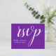 Este elegante y respetable diseño de tarjetas postales RSVP incluye el mensaje "rsvp" en la parte delantera, junto con un nombre para la ocasión del personalizable. También incluye un formulario RSVP de personalizable en la parte posterior, junto con una dirección de personalizable a la que se enviarían las tarjetas RSVP completadas. Tarjetas RSVP como esta pueden ser usadas para averiguar quién asistirá a una fiesta de cumpleaños, una ducha de bebé, una recepción de boda o alguna otra celebración.