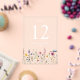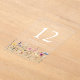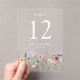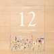 Añada un toque de belleza natural a su decoración boda con nuestras elegantes tarjetas de números de mesa Boda de Flor Silvestre. Estas encantadoras tarjetas de mesa cuentan con un vibrante borde de flores silvestres acuáticas y follaje en tonos rosa, amarillo, violeta, azul y verde en el fondo, colocado sobre un fondo acrílico esmerilado o transparente. Perfecto para los bodas de primavera y verano, el diseño rústico de una flor silvestre le aporta un ambiente fresco e inspirado en el jardín. Personalice cada tarjeta con sus nombres, fecha de boda y número de tabla. Para pedir, agregue cada número de tabla individualmente a su carrito y marche cuando esté listo.