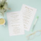 Elegante programa de bodas con presupuesto de oro falso (impreso en papel delgado de volante) con un diseño simple y mínimo con los nombres de la novia y el novio en un tradicional tipo de letra serif y los nombres medio y último en un elegante guión de caligrafía. Un estilo clásico perfecto para un boda formal.