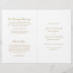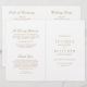Elegante programa de bodas plegadas en oro falso (impreso en papel de grado medio y se despliega) con un diseño simple y mínimo con los nombres de la novia y el novio en una fuente serif tradicional y el nombre medio y apellido en un guión elegante de caligrafía. Un estilo clásico perfecto para un boda formal.