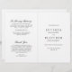 Elegante programa de bodas plegadas en blanco y negro (impreso en papel de grado medio y se despliega) con un diseño simple y mínimo con los nombres de la novia y el novio en un tradicional tipo de letra serif y el nombre medio y apellido en un elegante guión de caligrafía. Un estilo clásico perfecto para un boda formal.