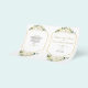 Elegante diseño de cartas con una acuarela delicada de flores blancas y hojas verdes, un falso marco dorado, sobre un fondo blanco. En el ramo de las flores blancas traseras. Utilice la herramienta Personalize para agregar su información, cambiar tipos de letra, colores de letra. Para ver elementos coincidentes, por favor, visite mi Delicada colección de Flores Blancas.