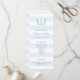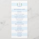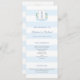 El diseño de este programa de bodas intemporal incluye un escudo de monograma inspirado en la costa de las acuarelas y elegantes rayas azules y blancas.