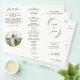Guíe a sus invitados durante su ceremonia con este folleto del programa de bodas Eucalyptus Greenery, que incluye elegantes hojas de eucalipto a la acuarela, junto con una foto personalizado de la pareja. El diseño limpio y moderno te permite mostrar tu orden de eventos, fiesta de bodas y detalles personales mientras le das un toque más sincero a tu imagen favorita. Este volante es totalmente personalizable, lo que facilita añadir tu texto, línea de tiempo y detalles especiales. Parte de la colección de Bodas Eucalyptus, se empareja perfectamente con invitaciones, menús, tarjetas RSVP, guardar las fechas, cajas de favores y más para un tema botánico cohesivo durante toda la celebración. ✨ Personaliza tu ceremonia con estilo y significado — explora la colección completa de eucaliptos ahora para crear una suite de papelería boda muy bien coordinada!