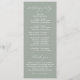 Estos elegantes programas de bodas en verde sabio presentan un marco decorativo ornamental con caligrafía moderna. Estos programas de bodas a lo largo del té son planos con un frente y una espalda. Tu fiesta de bodas y mensaje de agradecimiento está en la parte trasera. Ver piezas coincidentes en esta colección de bodas verdes de sabios.