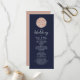 Sencillo, elegante, minimalista programa de bodas rosa y azul marino con monograma y escritura moderna.