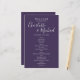 Sencillo y elegante programa de bienvenida boda de script de firma morada con nombres de estilo de firma. Personalice la información especial de su boda en moda con letras blancas modernas. Diseñado por Thisisnotme©