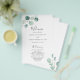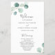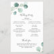 Elegante folleto de programación de bodas con un diseño sencillo, con un eucalipto verde de salvia pintado de color agua en la esquina superior izquierda y en la esquina inferior derecha. La parte delantera tiene tu orden de ceremonia y la parte trasera tiene tu fiesta de boda y mensaje de agradecimiento. Estos rústicos programas de bodas botánicas con un toque moderno son perfectos para un boda de primavera o verano. Estos programas de boda baratos se imprimen en hojas de papel para una opción asequible.