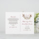 Diseño original y elegante de Rosas Blancas Rosadas. En el fondo, un ramo con los mismos rosas, todo de fondo blanco, se adorna con bonitas acuarelas con un ramo de rosas blancas. En el fondo borgoñoso, flechas con corazones, flores y iniciales de novia y novio. Añade tu información. Para ver los elementos coincidentes, por favor, visite mi colección Antlers de rosas blancas.