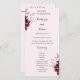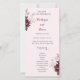Personalizable y elegante programa de bodas de color claro con flores de color rosa burdeos y polvorientas sobre un diseño de fondo rosa polvoriento claro. Es perfecto para una celebración floralromántica de bodas en el jardín.