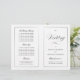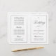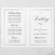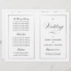 Este programa es una página de 8,5 x 11 que requiere doblarlo para ensamblarlo. El borde de línea se desvanece en la esquina y esto es intencional para coincidir con el estilo del guión. Clásico programa de bodas en blanco y negro con un toque moderno con el elegante guión de la palabra "Boda" en la "cubierta" exterior.