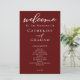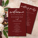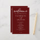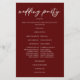 Este sólido programa de bodas en burdeos presenta un clásico guión blanco para que una novia y un novio se casen en un lugar de celebración de la noche. Abran el romance con este rico y audaz color. Programas de tipografía minimalista y romántica para una pareja moderna.