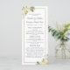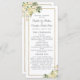 El elegante y formal programa de bodas de moda presenta románticos rosas bodas en blanco de vainilla acuarela con toques de rosa rubor mostrados en verde frondoso sobre un crujiente fondo blanco. Un marco geométrico en forma de cristal de color dorado brillante aporta un toque de moda. La redacción clásica tradicional proporciona una sofisticación intemporal. Personalice los detalles del menú boda para sus huéspedes en elegantes letras y guiones grises de carbón vegetal. La parte trasera de la tarjeta tiene el diseño y el color correspondientes y se trata de tu fiesta de boda. No dude en ponerse en contacto conmigo en invitationsuites@gmail.com si tiene alguna pregunta sobre este o cualquiera de nuestros productos