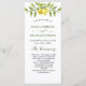 Elegante Programa de Ceremonia de Boda de Verdor Lemons. Utilice los campos de plantilla para agregar la información de la ceremonia y de la fiesta nupcial y, a continuación, haga clic en "Personalizar" para cambiar la posición de los elementos si fuera necesario. ¿Necesitas ayuda? Contáctame a través del enlace "Preguntar a este diseñador" en esta página.